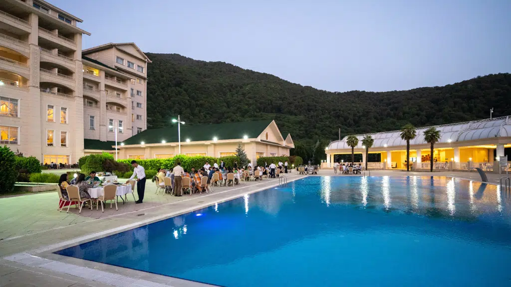 Gabala Restaurant - The Qebele Restaurant, located within the prestigious boundaries of the hotel, is a true culinary gem. This unique dining establishment offers a wide selection of international, national, and Arabic cuisine served in a grand and elegant setting. With a seating capacity for up to 400 guests, the Qebele Restaurant is an excellent choice for hosting large events, and meetings or enjoying delicious meals with friends and family in a delightful ambiance.